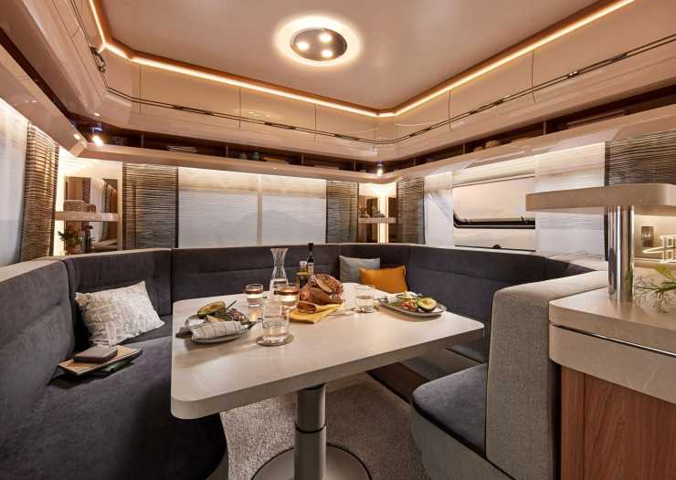 Serien Excellent får en rejäl översyn även invändigt med nya och rymliga överskåp där öppna hyllor ger praktisk förvaring. Luckorna till överskåpen har samtidigt fått soft-close. Två nya planlösningar kommer i Excellent-serien. Excellent 460 SL som är 6,76 meter lång och 2,3 m bred med långbäddar i fören och köket i aktern. Den andra är 620 CL vars layout hämtats från serien Prestige med en rejäl soffa vars U dragits ut mot det stora kökets barvinkel.
