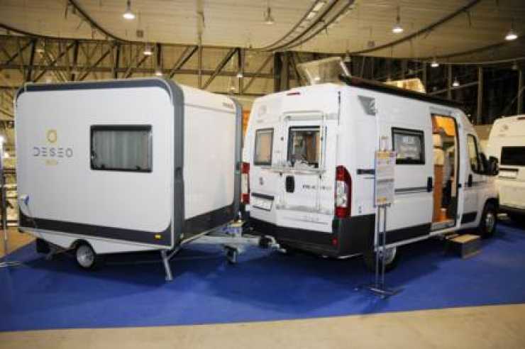 En vikt på 3500 kg för husbil och husvagn, tillsammans. Lilla Deseo Box finns i flera olika planlösningar men tas inte in i Sverige.