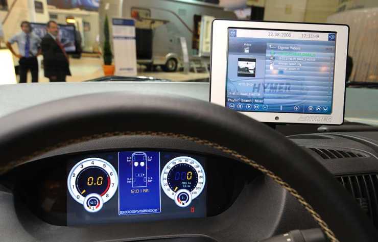 Hymer har själva tagit fram den heldigitala instrumenteringen som kan lämna mycket mer information till föraren. LCD-panelen är multimedia och backkamera.