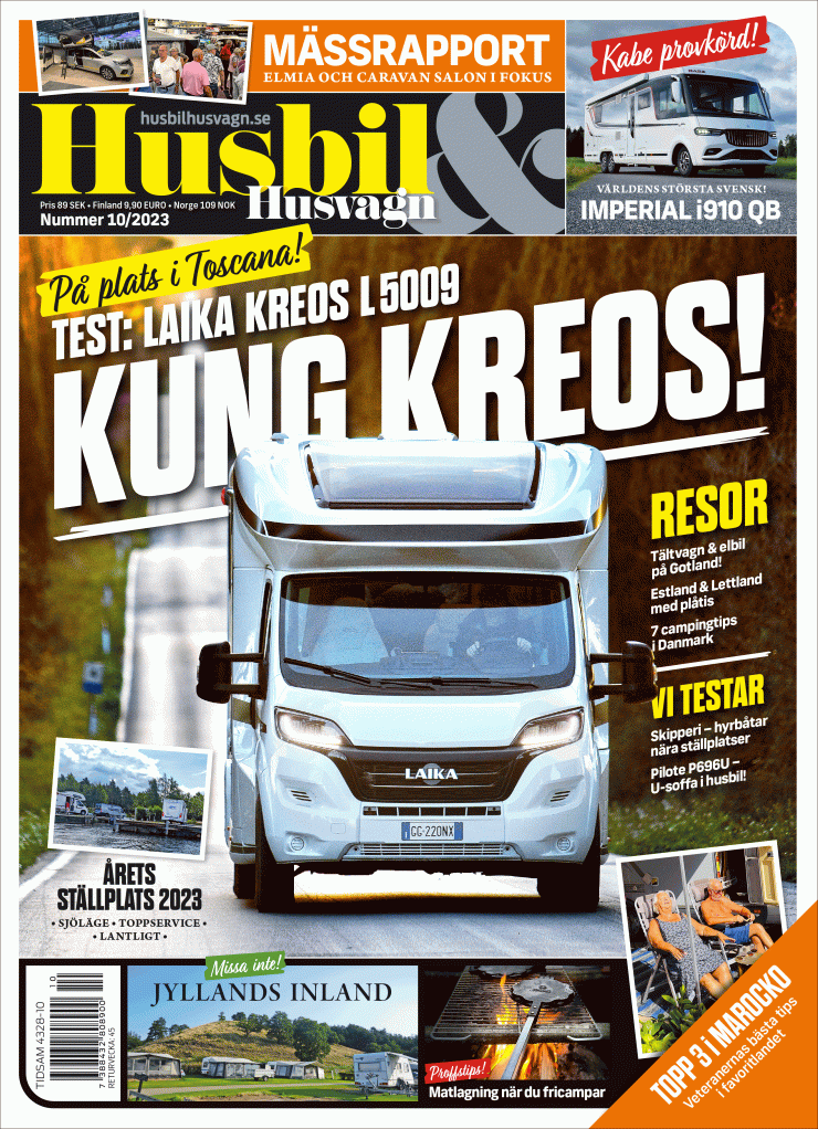 Tre provkörda: Kabe Imperial I 910, Laika Kreos L 5009 och Pilote P 696. Dessutom test av tältvagn med elbil på Gotland. 7 campingtips på Jylland, familj i plåtis stortrivs i Estland. Paret Kraft är Marocko-veteraner – ger sina bästa tips. Samt mycket mer!
