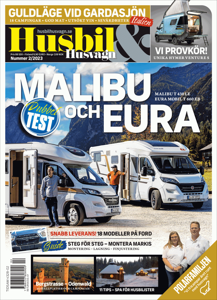 Stor guide till husbilar på Fordchassi. Vi jämför två husbilar med dubbelgolv. Monteringsguide för markis och takräcke. 10 skäl att besöka italienska Gardasjön. Möt familjen som fricampar i husvagn året om, samt mycket mer!