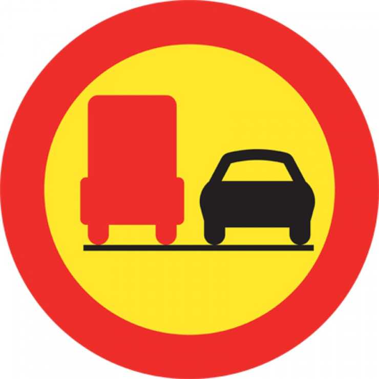 Är din tunga husbil, över 3,5 ton, registrerad som personbil klass 2 gäller i Sverige regelverken för personbil. Det innebär att det regelverk som avser omkörning med personbilar får eller skall följas. Skylten som avser förbud för omkörning med lastbil kan dessa förare bortse ifrån enligt Transportstyrelsen. Att det sedan kan vara olämpligt i vissa situationer får föraren själv göra en bedömning av. Men kör du utomlands bör du tänka efter. I exempelvis Tyskland är denna tunga husbil en tung lastbil och vägmärken för tung lastbil skall följas. Någon sammanställning av vad som gäller i olika länder finns i dagsläget inte.