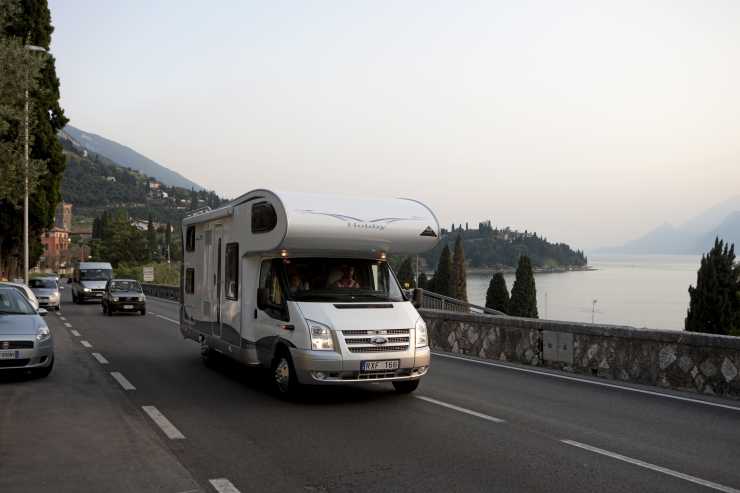 Vi tråcklar husbilen genom rondeller och förbi trafikljus och kommer strax fram till vårt mål – staden Lazise. Tipset har vi fått från släktingar i Bayern som varit här många gånger. Det känns väldigt skönt att slippa välja på måfå eftersom det kryllar av fina platser längs vägen.