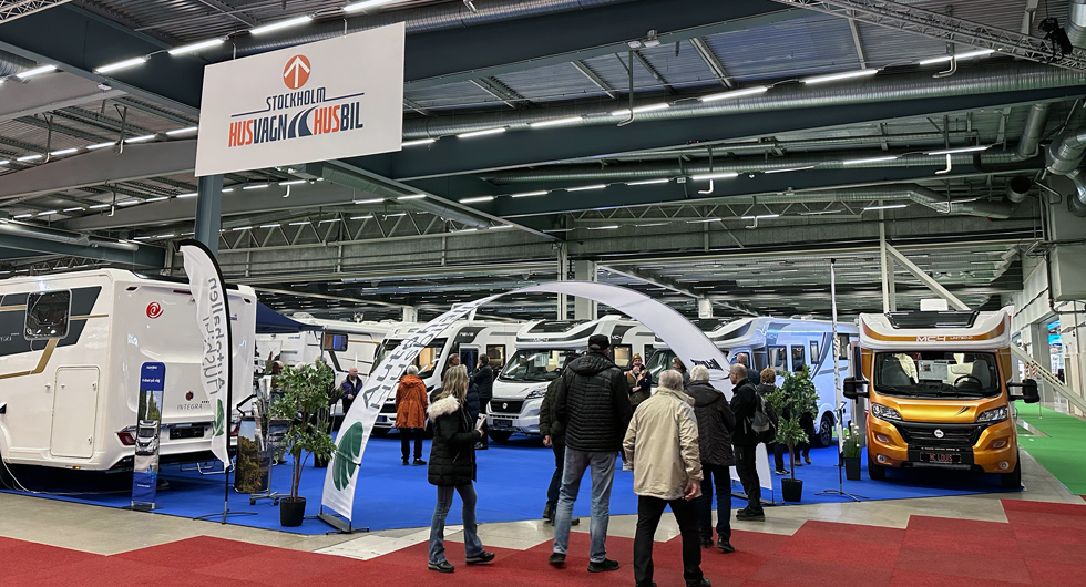 I ett kompakt område av Stockholmsmässan som packats tätt, tätt med fordon visas under fyra dagar ett 30-tal husvagns- och husbilsmärken och flera nyheter presenteras.