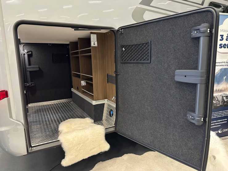 Hymer ML-T 580 4x4 Facelift var en favorit från CMT i Stuttgart i år. Det är lätt att falla för den snygga inredningen och den gedigna känslan – läs mer om den här. Men den kompakta husbilen är också späckad med smarta lösningar. Kolla in den dolda trappan och detaljerna i badrumsskåpet. Och vilket garage, här får lätt flera cyklar plats.