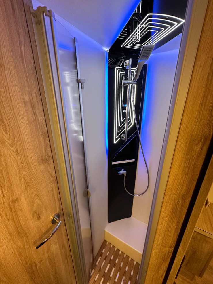 Snygg som få är Eura Mobil Profila T 726 QF på Mercedes, med sin mörka förarhytt. Men frågan är om det inte är duschen som tar priset i den här bilen. Det är risk för vattenbrist eftersom man vill stå där och njuta alldeles för länge. Mysiga face to face-soffor och queenbed gör inte saken sämre.
