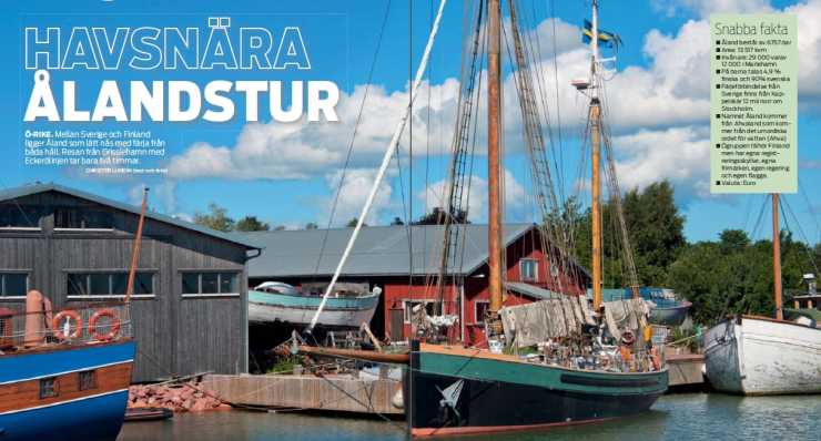 Åland: Ö-RIKE. Mellan Sverige och Finland ligger Åland som lätt nås med färja från båda håll. Resan från Grisslehamn med Eckerölinjen tar bara två timmar.