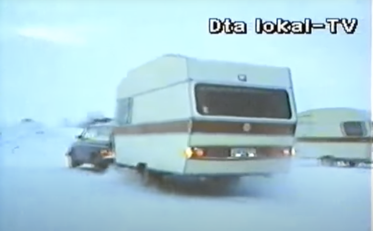 Filmklipp med vintertest av Polar där 96 tillresta motorjournalister drar husvagn i minus 44 grader. "Det är så kallt så orden fryser till is!"