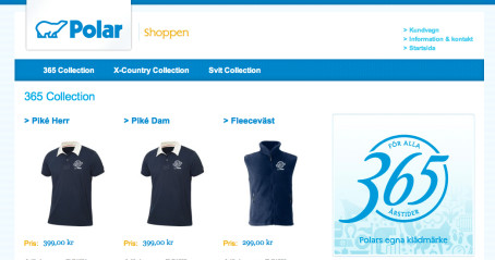 Polar satsar på egen butik – på nätet. I sortimentet finns bland annat kläder såsom sportiga hoodies, klassiska v-ringade tröjor, skidjackor, morgonrockar och ponchos.