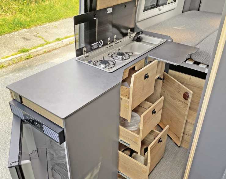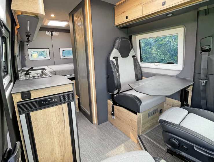 Senare kommer en basversion, men med bakhjulsdrift. Sittgruppen går att välja med antingen enkelsäte eller tvåsitssoffa eller loungesits utan bälte. Köksbänken smalnar av i höjd med badrummet vilket ger en mittgång på 50 cm trots det smala Sprinter-skåpet. Ett kompressorkylskåp på 70 liter sitter på gaveln och kan öppnas/nås från två håll.