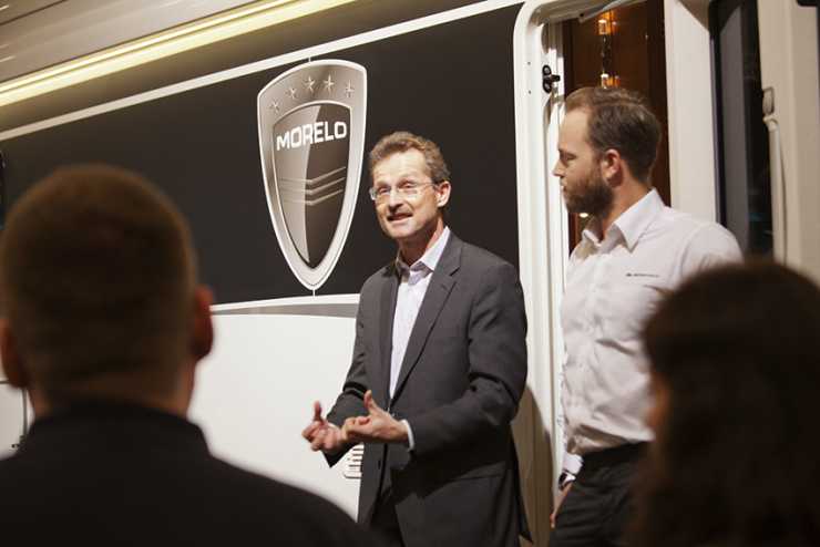 På mässan stod tre Morelo uppställda och trängseln kring dem var stundtals påtaglig. Efter stängningsdags på invigningsdagen dukades det fram snittar och flaskor korkades upp. Efter en stunds minglade höll Lars Bergholm, från Bergholms, och Andreas Wolfer-Heilmann, från Morelo, en presentation av företaget och dess bilar. Bilarna är välutrustade från start men tillbehörslistorna är trots det långa. Den minsta och billigaste heter Morelo Manor 74 H och kostar från 1.8 miljoner. Den är baserad på Iveco Daily, är 755 centimeter lång och har en totalvikt på 6000 kilo med lastvikten 1250 kilo. I andra änden av skalan hittar vi Morelo Palace 100 GS baserad på ett MAN chassi. 10.13 centimeter lång, 11990 kils totalvikt med 3990 kilos lastvikt. Priset? Från 3100000 kronor kostar bilen vars tilltänkta kunder förmodligen inte, först och främst, är ute efter en billig bil. Två återförsäljare finns i skrivande stund: FJ Husvagnscenter i Falkenberg och Husbilslandet i Kristinehamn.