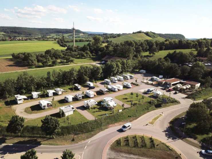 ”Beläget på landsbygden i Hohenlohe och med cykel- och vandringsleder i direkt anslutning. Endast några minuters gångväg till Öhringens historiska gamla stadsdel. Ställplatsägaren, Rainer Heidemann, hade redan i början av planeringen av platsen ett ekologiskt koncept som han har vidareutvecklat genom åren. I dagsläget finns naturytor, solcellsanläggning, solcellsdriven pump för varmvattenberedning, regnvattencistern, LED-belysning och sopsortering. Gästerna hittar också en solcellsdriven laddstation för elcyklar på plats.”