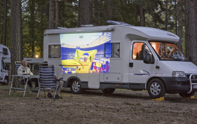 Hösten och vintern är bra årstider för film och serier i husbil eller husvagn. Och filmupplevelsen blir kanske ännu bättre med en projektor som kan visa en bildstorlek på ända upp till 200 tum.