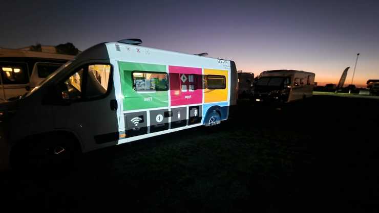 Piczo visar på sin hemsida att det går att ha filmvisning direkt på husbilsväggen.