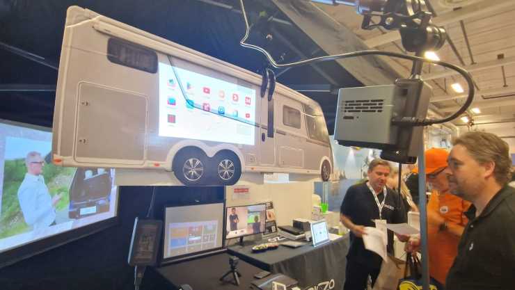 Här får redaktionens plåtis agera 6,36 m lång bildskärm. Nästan i alla fall! Piczo hade även en populär monter på Elmia som du ser i bildspelet.