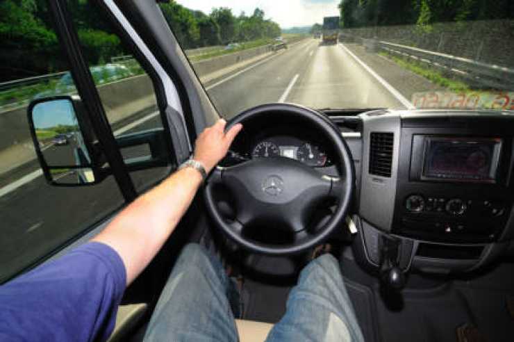 Förarmiljön i Mercedes Sprinter är enkel och funktionell. Automatväxlad låda finns som tillval.