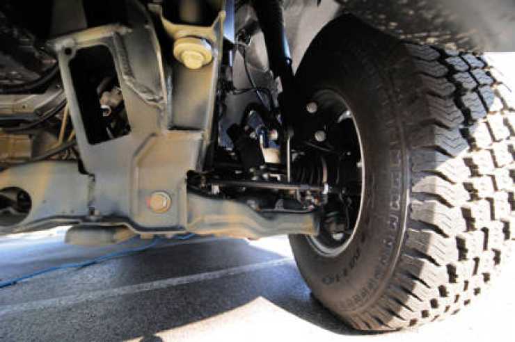 Grova hjulupphängningar och chassibalkar gör att LEV 4x4 ser ut att klara en hel del stryk. Frågan är bara om man vill köra i terrängen med husbil för 1,6 miljoner kronor.