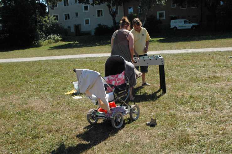 När Husbil & Husvagn hälsar på en solig dag i början av augusti, köar både badbesökare och övriga förortsbor utanför vagnen.