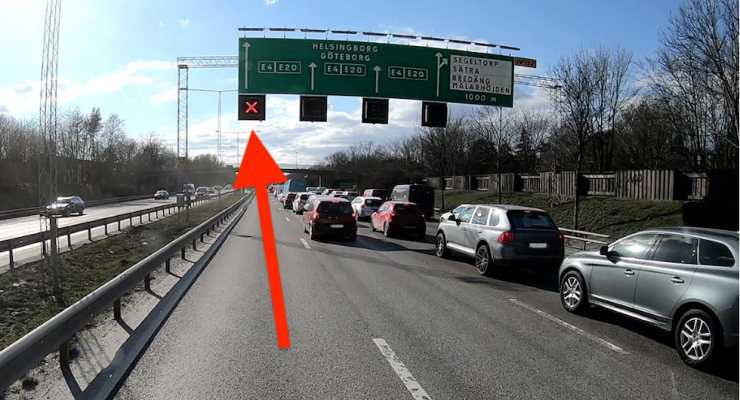 Det är alltid det yttersta körfältet, högra eller vänstra, som stängs av och kan vara rödkryssat från några minuter till över en timme. Den som inte följer reglerna riskerar böter på upp till 3 000 kronor och indraget körkort.
