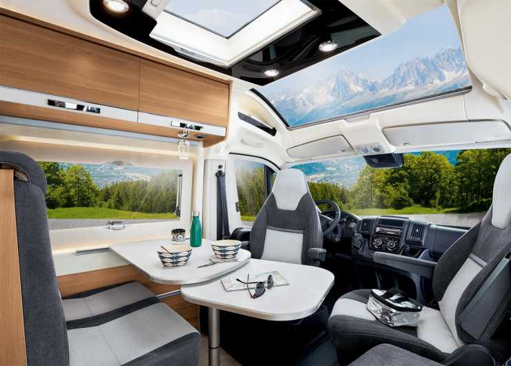 Sänglösningen som kallas fransk passar bra i denna bil från Rapido som är just från Frankrike och byggs i Mayenne några timmar från atlantkusten i nordvästra delen av landet. Rapido är mest kända för sina hel och halvintegrerade modeller med de har en del plåtisar och V62 är något extra. Sänglösningen gör att det blir en öppen och ljus känsla i bodelen och ljus finns det gott om tack vare ett stort panoramatakfönster fram. Basfordonet är en Fiat Ducato skåpbil med längden 636 centimeter. Totalvikten är 3500 kilo och lastvikten uppges vara 419 kilo. Färsk- och gråvattenkapaciteten är 110 respektive 100 liter och för uppvärmningen står en Truma Combi 6E värmepanna som drivs av gasol och/eller el-patron. Med motoralternativet 140 hk kostar bilen ungefär 700 000 kronor.