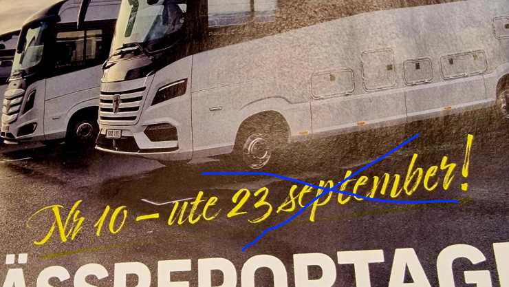 Något förvånat blir vi kontaktade av flera läsare som undrar varför de inte fått nr 10 av Husbil & Husvagn. Detta gjorde oss först förvånade eftersom vi knappt hade hunnit skriva klart och skicka alla sidor till tryckeriet än. Förklaringen är dock att vi skrivit fel utgivningsdatum i slutet av senaste numret.