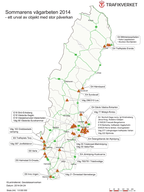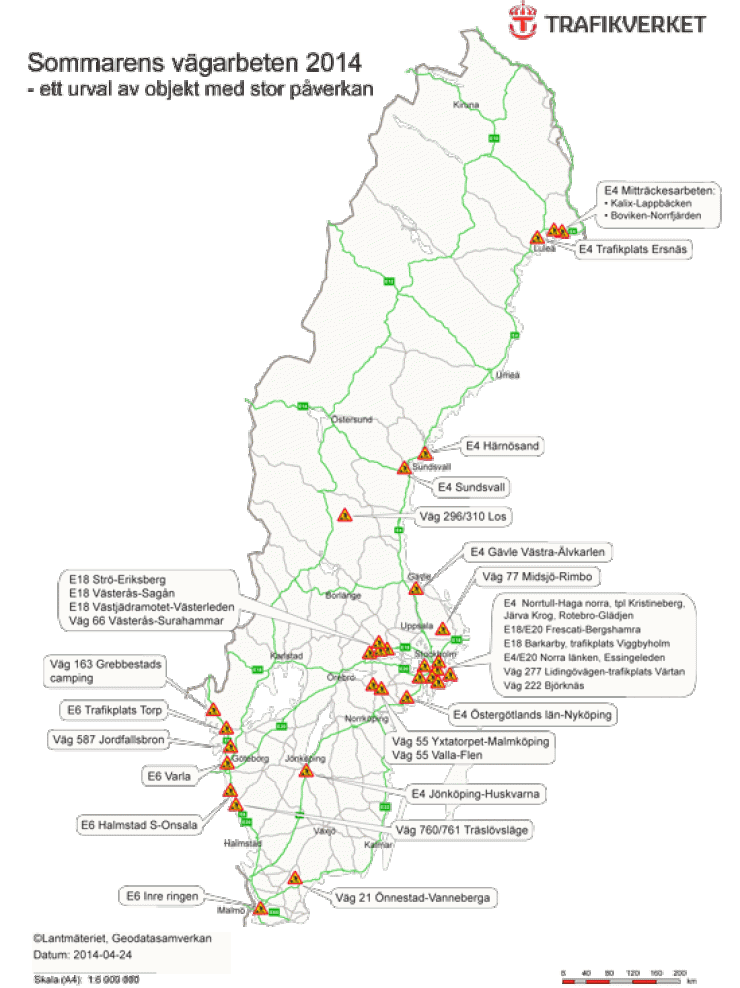 Trafikverket har sammanställt årets stora vägarbeten. Vi återger här deras uppgifter om vilka platser som berörs.