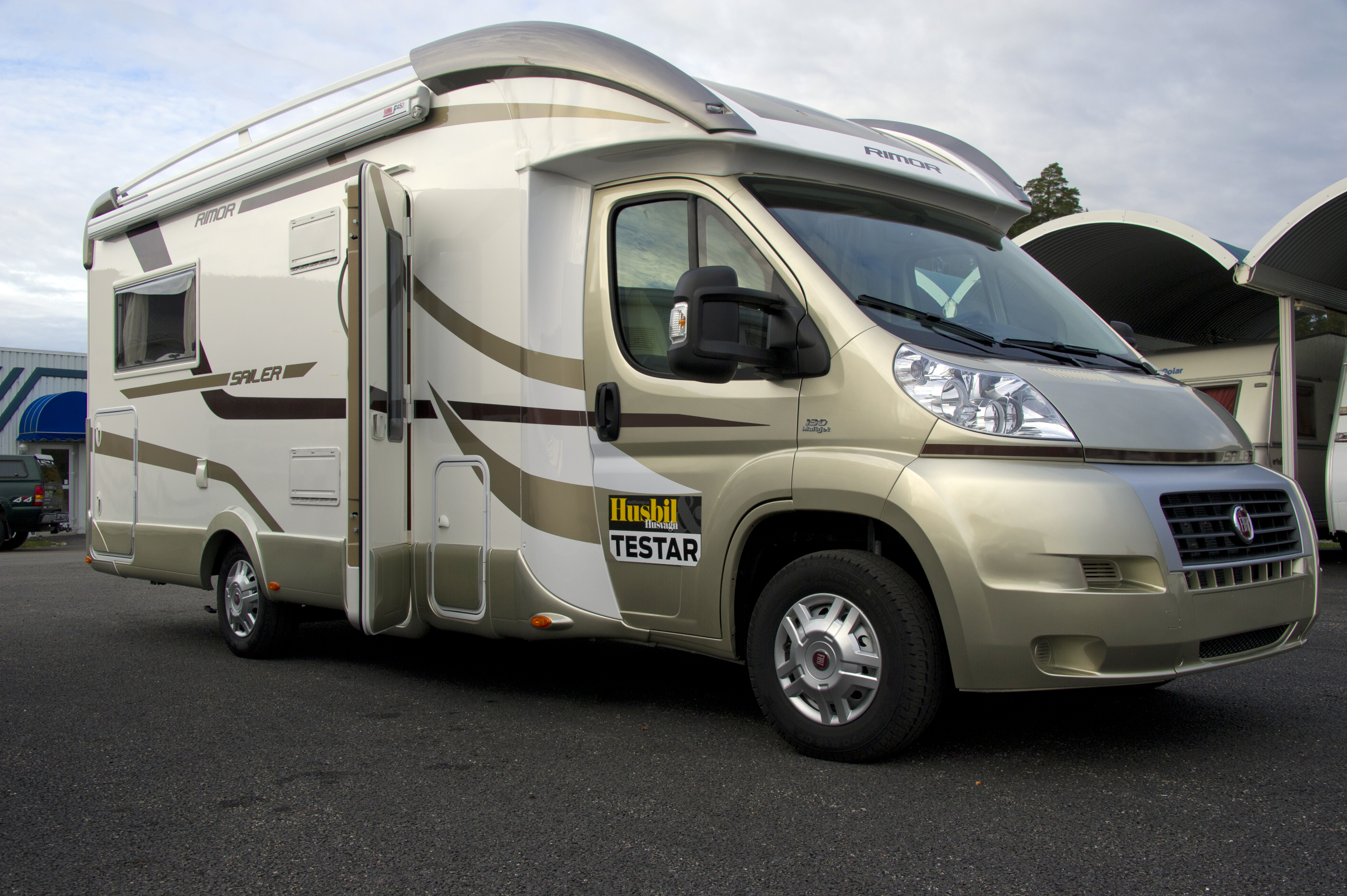 Vår provkörda Rimor Sailer 95 plus bygger på Fiats nya Ducatochassie. ”Plus” i namnet betyder att bilen är försedd med en fällbar alkovsäng. Standardmotorn i Sverige är 130-hästaren och har manuell sexväxlad låda, men bilen kan även beställas med 150 hk som vår provbil var utrustad med. Det senare motoralternativet är nog att föredra. Kraften verkade lagom både i uppförsbackar och vid omkörningar. Dessutom går bilen ovanligt tyst. Ljudnivån på slät väg ligger på låga 65 dBA vid 70 km/h och höjs till 76 dBA när vi ökar farten till 90 km/h. Inredningen är fri från både skrammel och knirkande vilket gör körintrycket ännu behagligare.