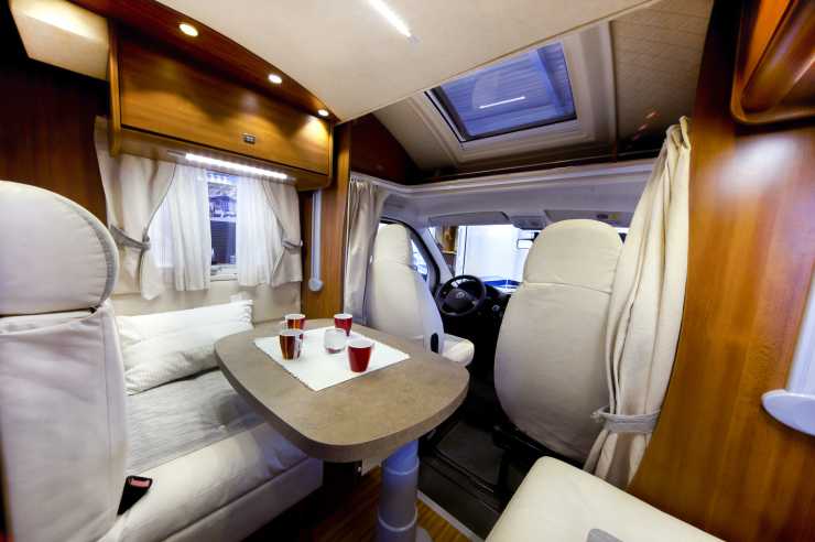 Förarplatsen är bra och överskådlig men avsaknaden av elektriskt styrda backspeglar drar ner betyget. Förarstolen går manuellt att höja och vinkla åt alla håll och ratten är ställbar i längdled. Det finns hela åtta fack i framdelen av fordonet och eftersom det är frågan om en halvintegrerad bil så har även framsätespassageraren en egen dörr som standard. I standardutförandet ingår en cd-radio med högtalare i kupén och AC:n sprider svalka bara i bilens framdel. Andra ljudanläggningar, navigator och backkamera får vid behov eftermonteras. Tyvärr är inte bilen förberedd med behövlig sladdragning vilket gör monteringen lite krångligare.