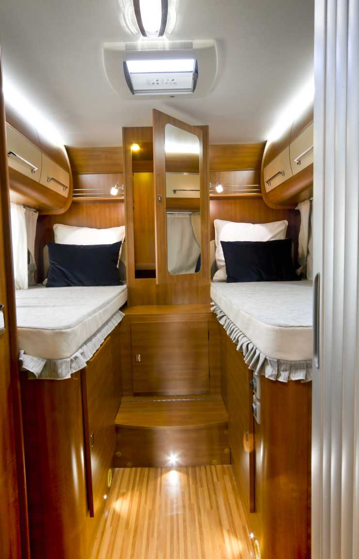 Risken att ramla ur överbädden kan avvärjas med skivor eller nät som dock inte är standard. De som sover i övervåningen har två skylights att blicka ut genom. En större framme i taket och en mindre, öppningsbar, i mitten av sängen. Förutom den bäddbara dinetten, vars dynpussel inte bildar den allra bekvämaste bädden, så är taksängen lagom mjuk och torde borga för god sömn. Insyn från förarhytten skyms av gardiner och samtliga skylights och fönster inklusive den i huvudingången är försedda med jalusier och gardiner. Alla öppningsbara ljusinsläpp har myggnät och hela dörröppningen kan säkras mot flygfän genom ett heltäckande utdragbart nät.