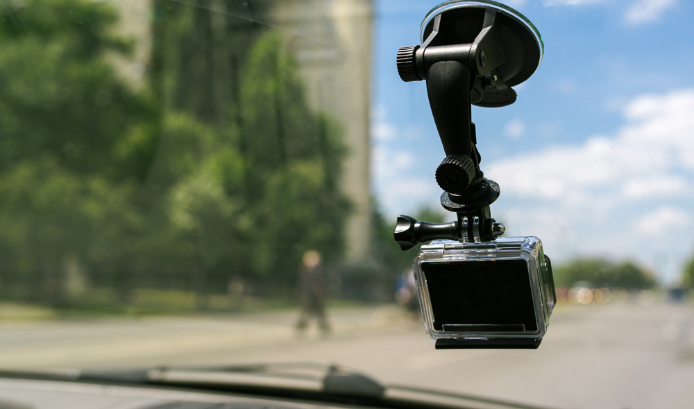 Kamera som sitter fast tillfälligt med sugpropp på vindrutan, som här, är tillåtet.