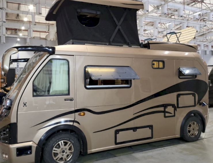 Popup-tak med säng och tv, diskmaskin, altan på taket, 6 meters totallängd, busschassi och mycket annat ligger till grund för det stora intresset. Kolla själv vad du tycker!