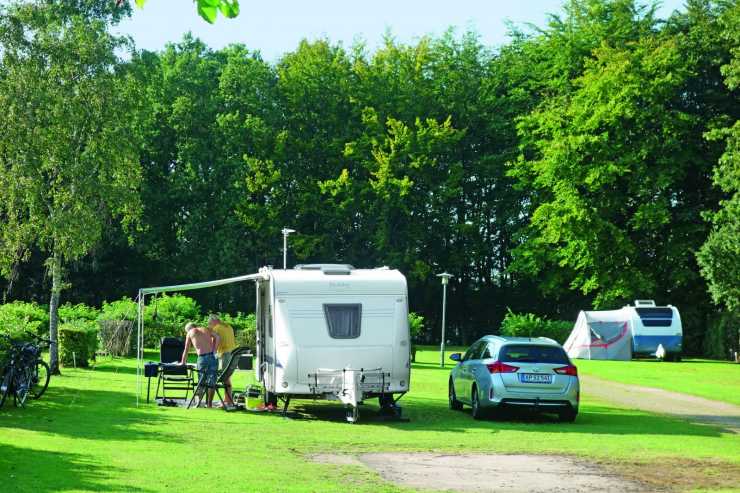 Info: Ställplatser på plana ängar med gångväg till Søndersee. Därifrån kan du se stadens katedral på motsatta stranden. Perfekt för bad och fiske.