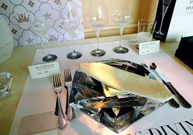 Nu finns samma glas att köpa även för vanligt folk. Utan det kungliga monogrammet. Servicen heter Divine och ett glas kostar 399 kr.