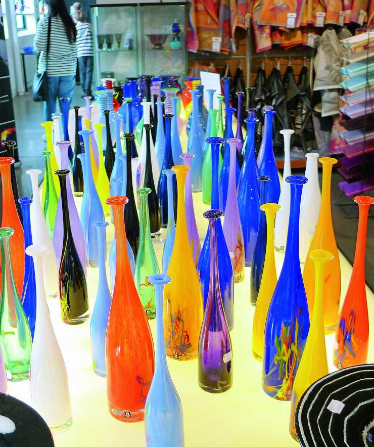 Glasbruken har givetvis egna affärer där deras produktion säljs. I glasshopen på de stora bruken är det ofta glas av andrasorteringen som säljs till ett pris som är kanske hälften av vad prima vara kostar i din vanliga affär.