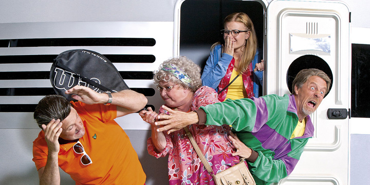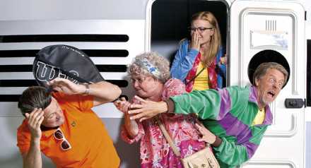 Har du varit på en semester där allt gått snett? I år spelas föreställningen ”Campa i klaveret- En hejdlös rolig husvagnsbuskis!” på Vallarnas frilufsteater i Falkenberg.