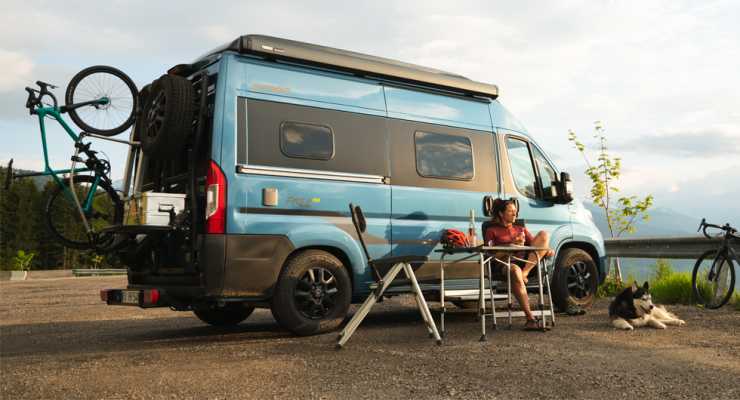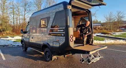 En liten hylla och en hållare til reservhjulet är två av modulerna till Hymer Backtrack +