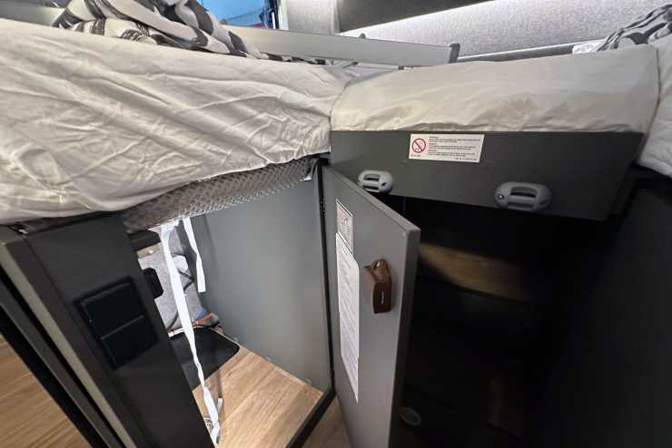 Alla vet att husbilsbäddar kan vara korta, så att testa dem före köp är speciellt viktigt för längre personer. I långbäddarna i Trend T 6617 EB får även långskånkar plats. Den ena bädden är 212 x 80 centimeter. Den andra 201 x 80 centimeter. Under dem finns förvaring som har automatiskt ljus, vilket gör det enklare att hitta rätt prylar.
