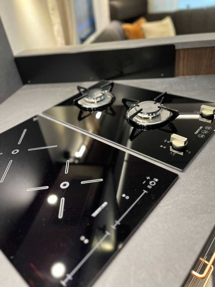 I 730-vagnarna är det en elektrisk ugn och micro i en pelare som standard. Önskas mer lyx i köket finns tillvalet vinkyl.