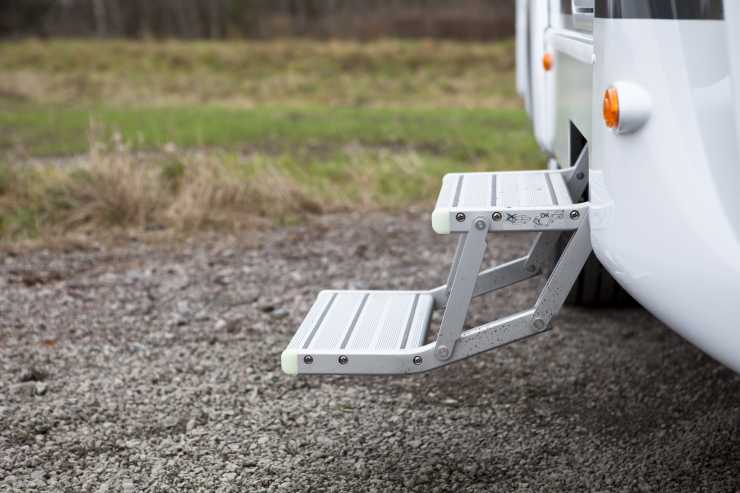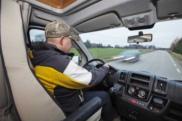 Är man ute på vintern kan eltrappor krångla, en extra trappa eller pall kan då vara bra att ha med. Med en fungerande trappa tar man sig enkelt in i bilen. Entrén är belyst utifrån och dörren har myggnät i kassett. För övrigt är dörren något spartansk, varken fönster eller förvaring, men två utfällbara klädkrokar glädjer oss.