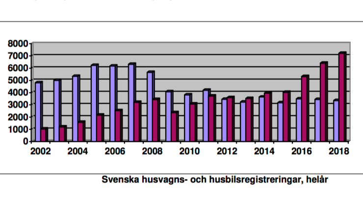 Något osäkrare är däremot ökningen av antalet levererade husbilar. Enligt HRF:s statistik nyregistrerades 7 218 husbilar under 2018, vilket är 12,7 procent fler än under 2017. Exakt hur många av dessa som levererats till kund, är dock ej fastställt.