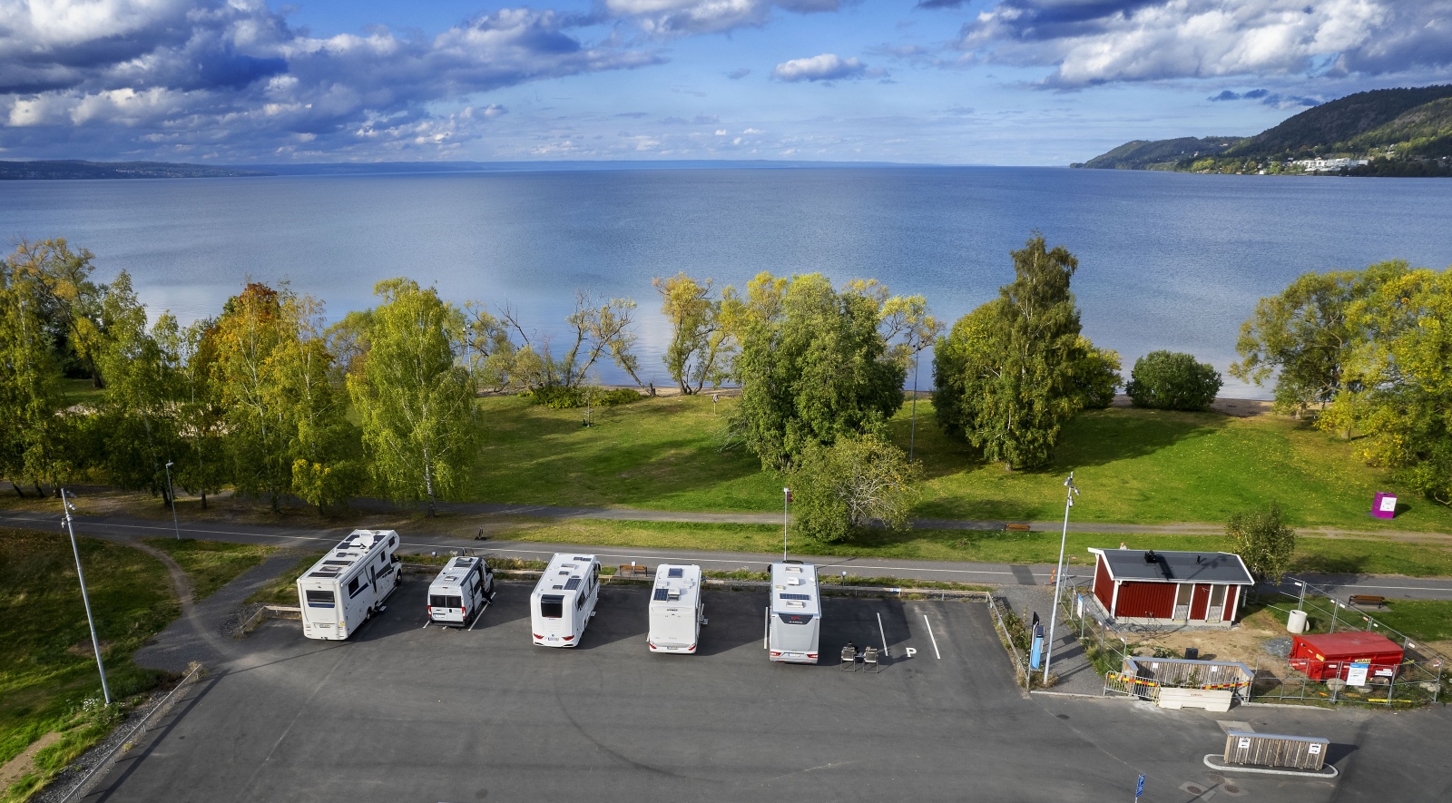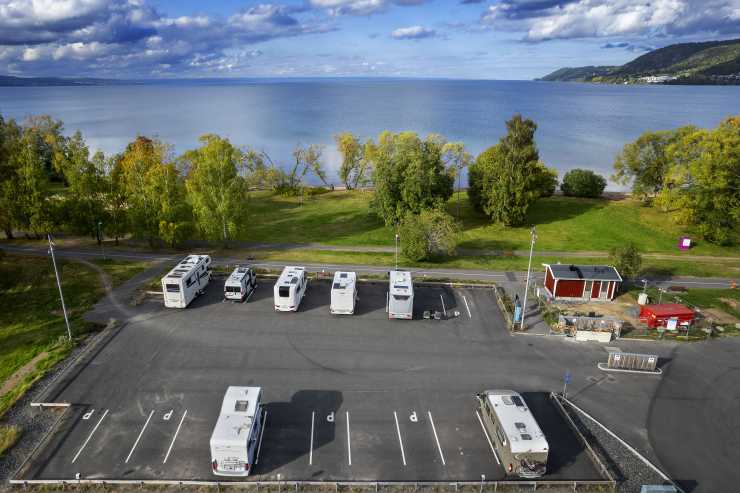 12 ställplatser för husbil på asfalt intill Vätterstranden i Huskvarna på området som kallas Oset.