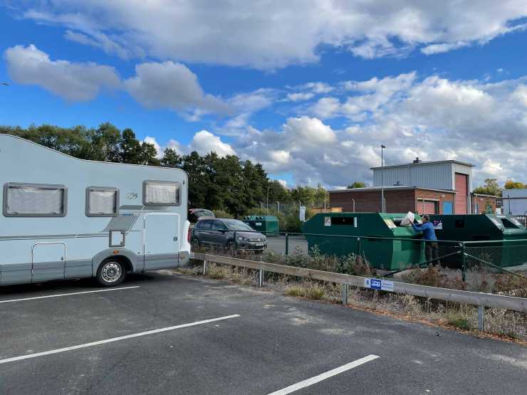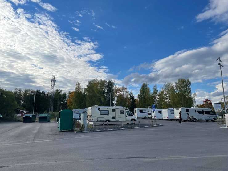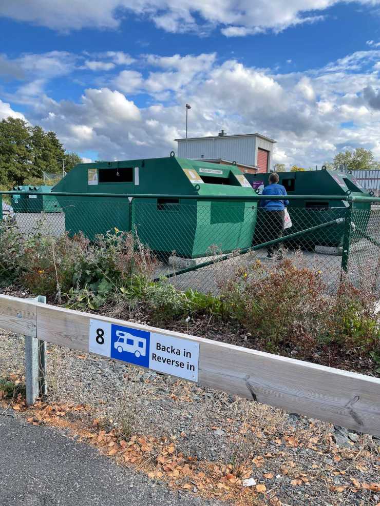 - Grannarna. Åt ena hållet har du utsikt mot Vättern. Åt det andra mot en återvinningsstation. Det är svårt att förstå varför kommunen valt att placera ställplatsen här, och inte där den vanliga parkeringsplatsen på andra sidan vändplanen ligger, med utsikt mot grön växtlighet. Sannolikt beror det på att den vanliga parkeringsplatsen behöver större yta, som man inte vill minska.