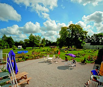 Ställplats för husbilar i närheten av Kafé 56:ans uteservering och trädgård.