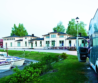 Restaurangen Athos Kök & Bar alldeles intill sköter serviceanläggningen. Kostnad: 100 kr. Övrigt: Serviceenhet med dusch och tvättmaskin. Ej mellan 10-14. Kontakt: Athos Kök & Bar 0221-150 70