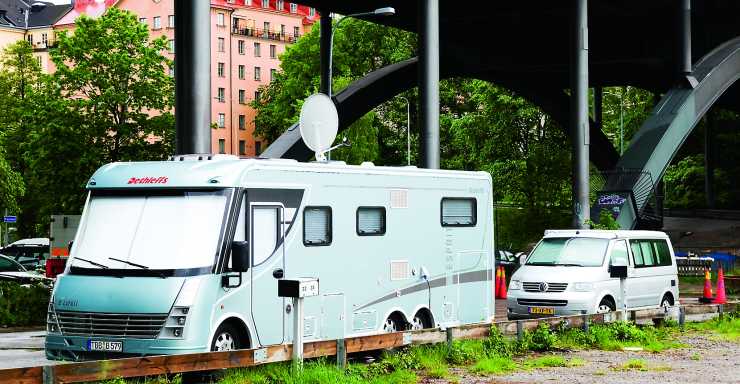 Det finns två broar till Långholmen och för att du ska komma till ställplatsen. Kostnad: 200 kr/dygn. Övrigt: Tvättmaskin samt dusch finns. Kontakt: 08-669 18 90, www.autocamper-stockholm.se