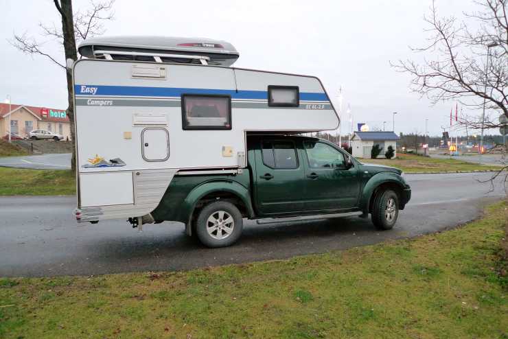 Husbils- och husvagnsplatser på asfalt inom inhägnat område. För att bli insläppt ringer man till vakten via en telefon vid grinden.