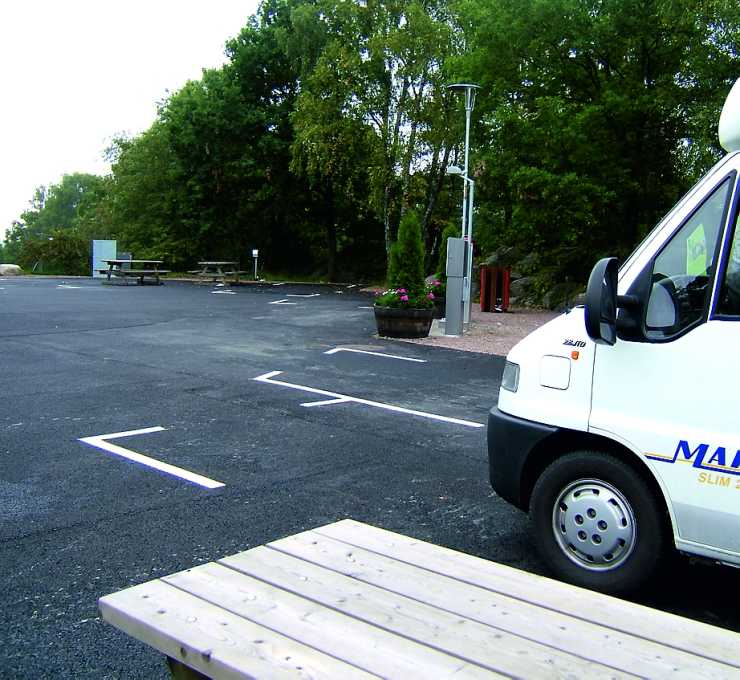 Parkering på asfalt på speciellt anordnat område ovanför Lisebergs Camping Kärralund.