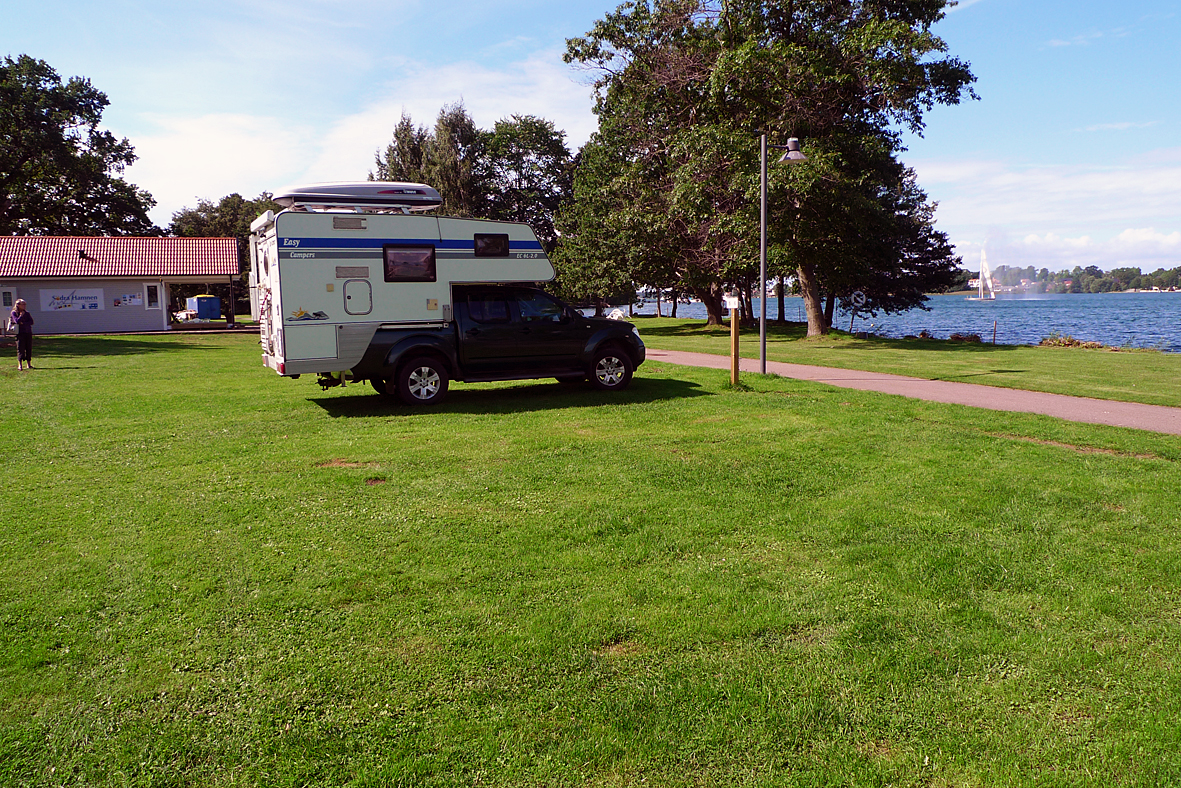 Stor och välordnad ställplats på gräs vid Vättern. Kostnad: 130-160 kr. El 50 kr. Övrigt: Vackert belägen plats vid sjön och med utsikt mot Motala Bilmuseum. Plats även för husvagnsekipage. Duschar. Plats kan bokas i förväg. Kontakt: Tel 076-8541111.
