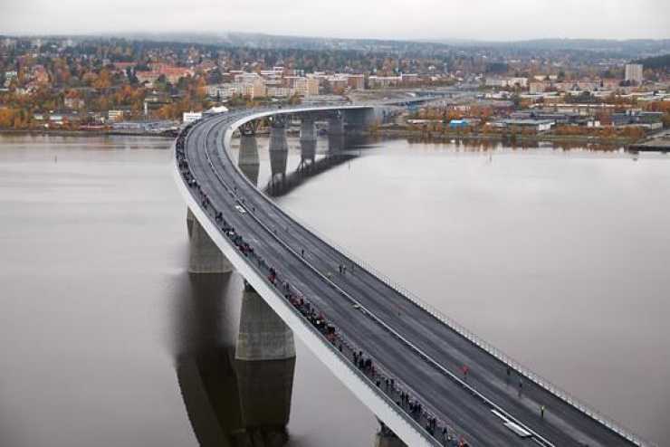 Bron, som sträcker sig över Sundsvallsfjärden, är en del av det två mil långa E4-projektet från Skönsberg i norr till Myre i söder och projektet beräknas minska körtiden med 20 minuter i rusningstrafik för de omkring 10 000 fordon som dagligen beräknas köra över bron.