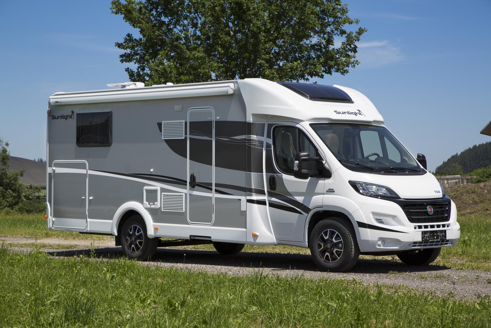 Det första är ett stylingpaket bestående av tillbehör till Fiat delen som diamantfälgar, högblank svart grill, LED-varselljus och smala kromlister runt mätartavlorna. Det finns även ett paket till bodelen, Active, och det ger bilen en egen karaktär och sportigare profil i jämförelse med de vanliga Sunlightbilarna. Framförallt gäller det baktill där det sitter en ny vertikal bakljusramp med nya bakljus. Den yttre utsmyckningen går helt i svart, vitt och gråsilvriga nyanser. Förutom logggan i emblemet som lyser klarröd. Vi tar en titt på en av Sunlights populäraste modeller nämligen T-68 som har höga långbäddar, taksäng, L-kök och separat toalett och dusch. Titta gärn på bildspelet!